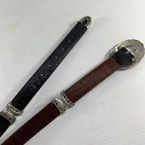 Womens Reversible Black Brown Belt Silver Colored Metal Details Size Small. Unbranded. Has some wear on metal and on edges. Please see pictures. Belt can be "twisted" at the two metal areas on the belt. This allows you to make the belt a combination black and brown or just black or just brown.