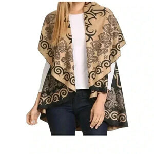 Women’s Reversible Boho Grandma Open Front Paisley Print Aztec Lagenlook Poncho Cape Shawl