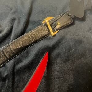 Women's Reversible Red & Black Italian Leather Belt XS Gold Golf Ball Buckle NWT
