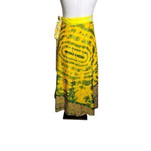 This vibrant reversible wrap skirt features a beautiful blend of yellow and green hues, perfect for adding a pop of color to your wardrobe!