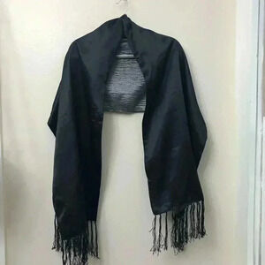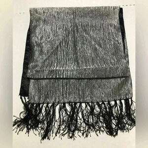 Women’s Reversible Wrap Silver and Black with Fringe One Size