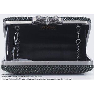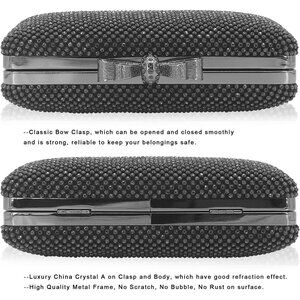 ⚡ Women's Rhinestone Crystal Bow Clasp Metal Chain Evening Black Clutch Handbag