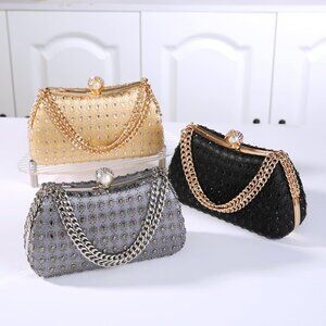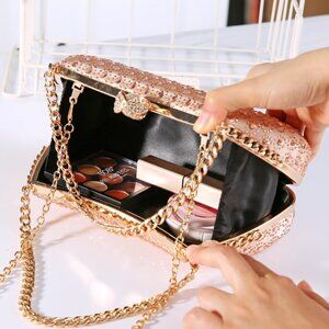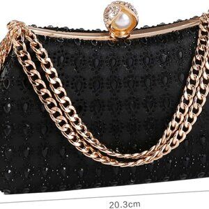 Features: Sparkling rhinestones all over, a sleek satin lining, and a practical design with one main compartment. Comes with both a short (1.6 in) and long (6.2 in) detachable chain—wear it as a clutch, shoulder bag, or crossbody for different looks. Compact yet spacious enough for essentials.