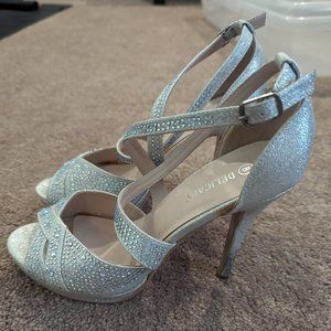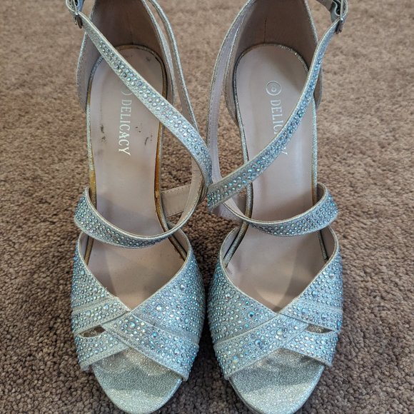 Super sexy and fun rhinestone heels. Perfect for wedding or night out! Comfortable and fit TTS (women's 8). Smoke-free, kitty-friendly home. Feel free to make me an offer!