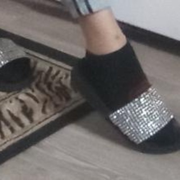 Step out in style with black and silver rhinestone slides. Perfect for if you trying to add a lil spark to your outfit. Size 10. Missing a couple of rhinestones. This an older picture. DM for More pics or details.