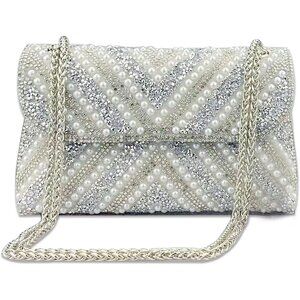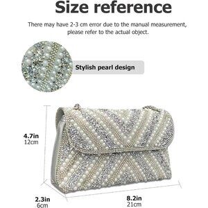 FEATURES: This luxury glitter evening clutch is full of dazzling rhinestones and Pearl, has a main compartment and a small card slot, with durable perforated double chains; and Magnetic snap design makes it more convenient to use. This evening bag will make you a dazzling one on every occasion.