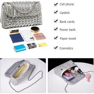 ⚡ Women's Rhinestones Silver Chain Shoulder Sparkly Cocktail Clutch Party Bag