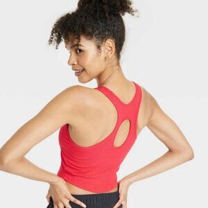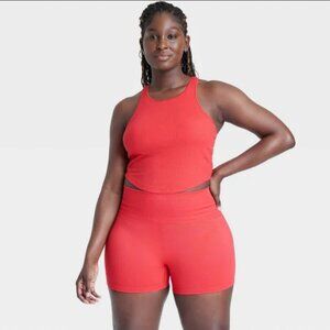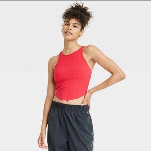 Women's Rib High Neck Racerback Cropped Tank Top - All In Motion Red M