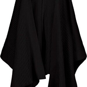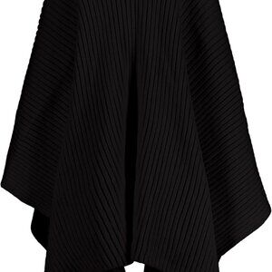 Women's Rib Knit Ruana Black Polyester Shawl Wrap Poncho Fashion Accessory