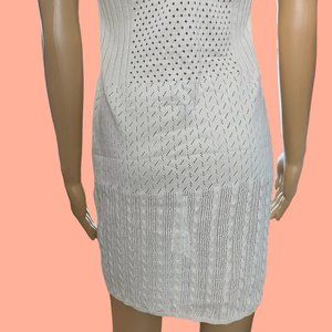 Womens Ribbed Beach Slip Dress Large L Ivory Crochet Stretch Knee Length Eyelet