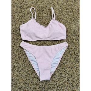 Women's Ribbed Bikini Sets Scoop Neck Cheeky Swimsuit Textured Pink‎ Two Piece M