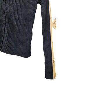 This women's ribbed cardigan in black is an XS size, offering a snug and stylish fit. Made with soft materials, it's versatile for casual days.