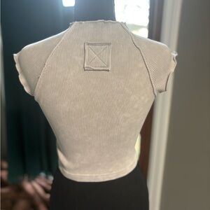 Elevate your style with this chic super soft, ribbed, light gray crop top. Perfect for any occasion, this top offers both comfort and elegance.