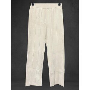 Women's Ribbed Cream Wide Leg Ponte Knit Cropped Ankle Pull On Pants Size Small
