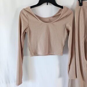 Women’s Ribbed Crop Top & Wide Leg Pants Set Size S Long Sleeve Casual Fall Outf