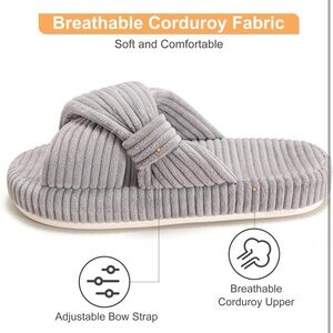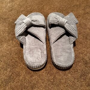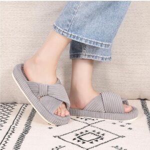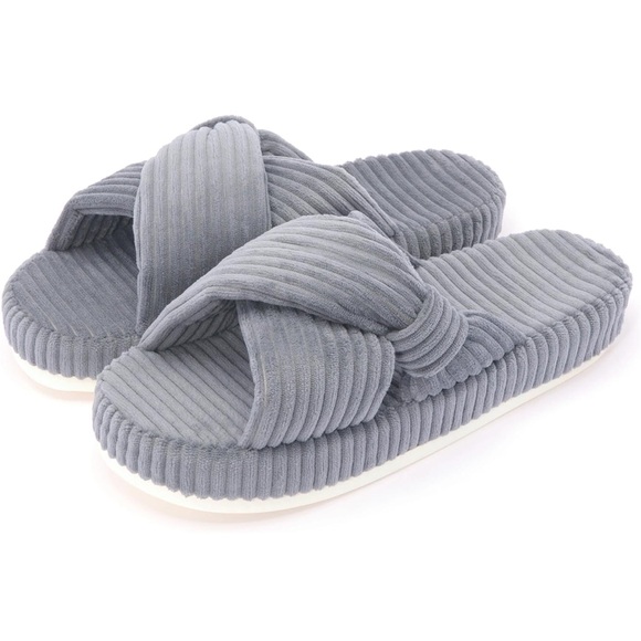Experience comfort with these ribbed gray slippers, perfect for relaxing at home.