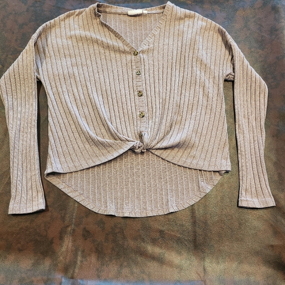Elevate your style with this chic beige ribbed knit top. Perfect for casual outings or a relaxed day at home. The soft fabric ensures comfort and a flattering fit.
