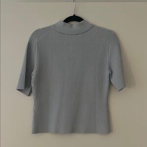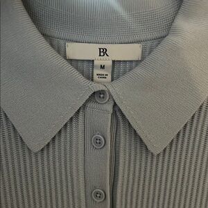 Elevate your wardrobe with this chic ribbed polo top. Featuring a classic collar and button-up design, this light gray top is perfect for any occasion.