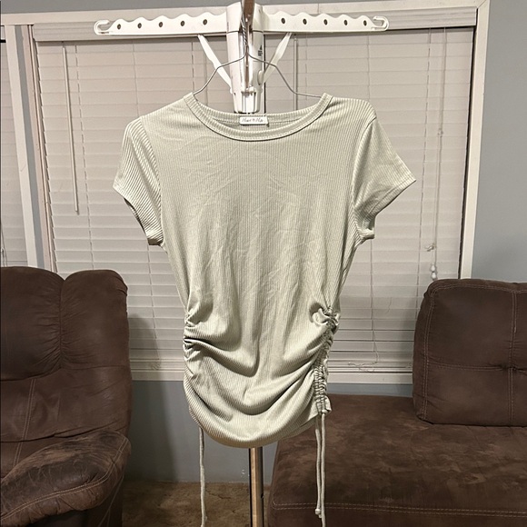 Elevate your style with this chic ribbed ruched top. The light green hue adds a fresh touch to your wardrobe. Perfect for casual outings or dressing up.