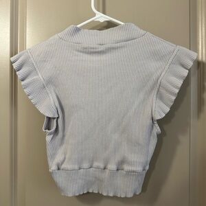 Elevate your style with this chic ribbed top featuring ruffle sleeves. Perfect for any occasion, this top adds a touch of elegance to your wardrobe.