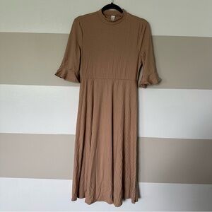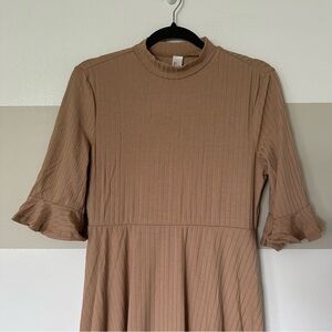 Women’s Ribbed Ruffled Dress - Tan - Size L