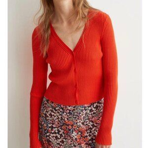 Stay cozy and stylish with this vibrant red V-neck cardigan sweater. Perfect for layering, this sweater adds a pop of color to any outfit.