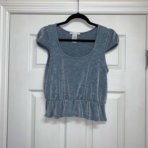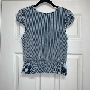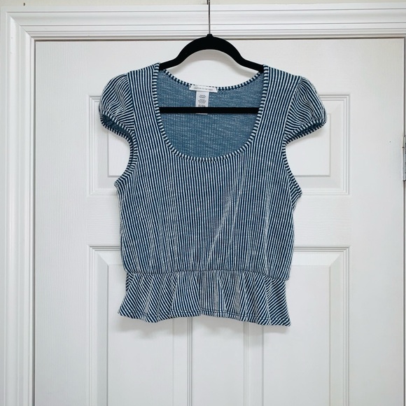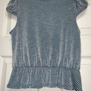Women’s Ribbed Flutter Trim Top, Short Sleeves Round Neck Line Size L Never Wore 55% Rayon 41% Polyester 4% Spandex