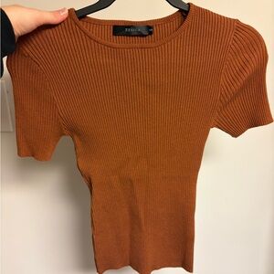 Elevate your wardrobe with the Women's Ribbed Top. This stylish piece features a rich brown hue, perfect for any occasion.