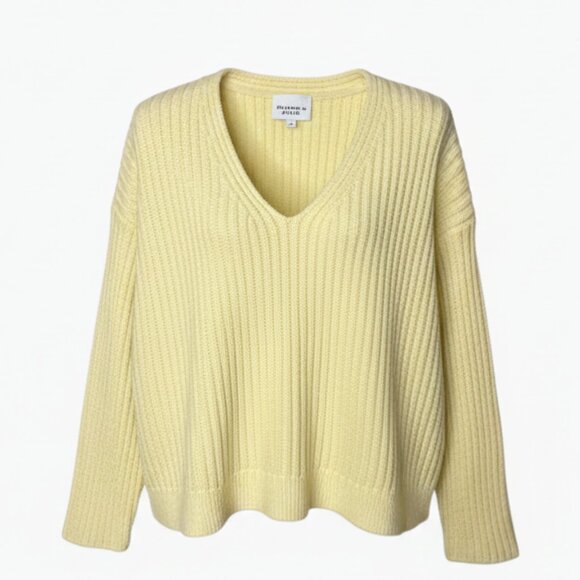 Women's Ribbed V-Neck Sweater (Light Creamy Yellow color)
