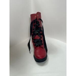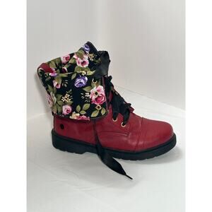 Women's Ribbon Lace up Cuff Floral Combat Boots Size 8.5-9
