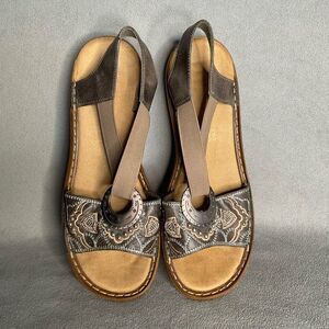 This Women's Rieker Regina Sandals Metal Embellishments Slip On Size 41/ US 9,5 Gray