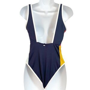 Women's Rip Curl Heat Weave Color Block One Piece Low Back Swimsuit Scoop Neck