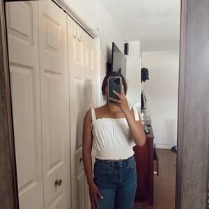 Women's Ripcurl White Sleeveless Tie Shoulder Ruched Blousee XS
