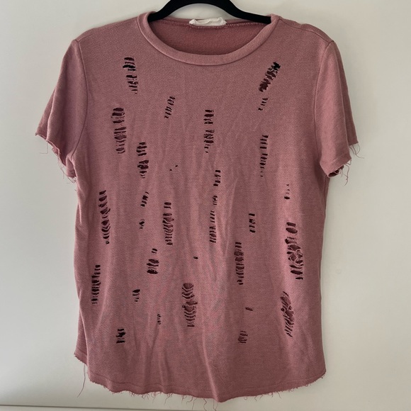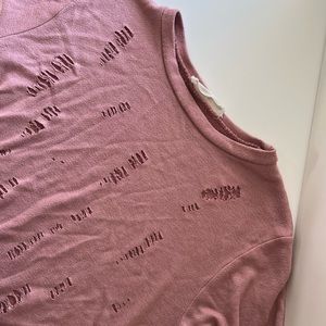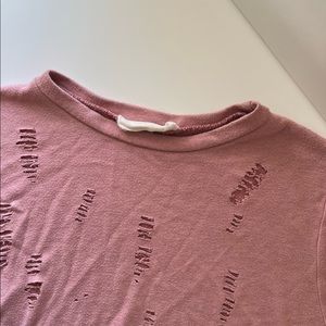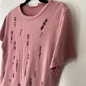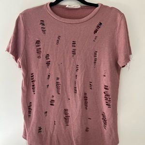Intentionally ripped! This fun ripped and thready mauve shirt will give you that bad girl vibe! Pair it with one of my black joggers on sale, along with my faux leather jacket on sale as well! Give off them bad girl vibes and do you!