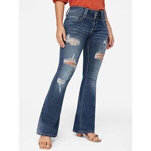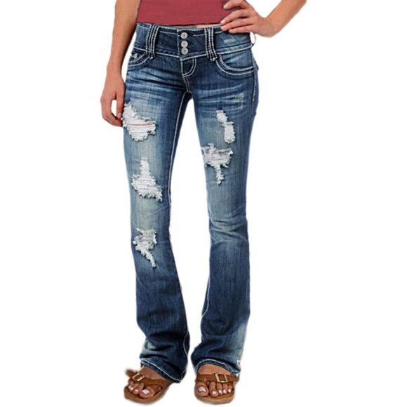 Women’s Ripped Wide Leg Jeans Low Rise Stretch Denim Plus Size Pants