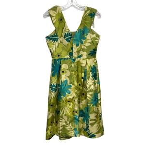 Women's Robbie Bee 50's Inspired Floral Green Blue Sleeveless Dress Size 6