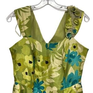 Women's Robbie Bee 50's Inspired Retro Floral Green Blue Sleeveless Dress Size 6