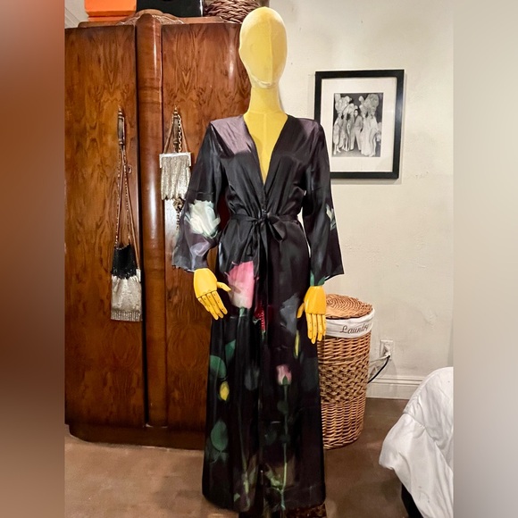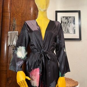 This piece is silky, but it is polyester. The robe runs a bit small. I have never worn it.