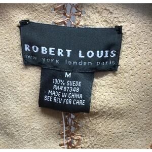Vintage Robert Lewis patchwork suede two-piece set — jacket (size M) and skirt (size S). Crafted from genuine suede with whipstitch seams, this set embodies western heritage styling, cowboycore, and the festival-ready silhouettes echoed on 2025 runways from Ralph Lauren and Chloé. Jacket features a structured collar and tailored cut; skirt is knee-length with button closure. Together, they make a rare archival-quality set perfect for Burning Man, Coachella, and holiday dressing, or styled separately with denim and boots for everyday wear.