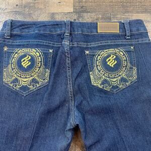 Womens Rocawear Hannah Skinny Leg Jeans Size 13 Dark Wash Embroidered Zippered