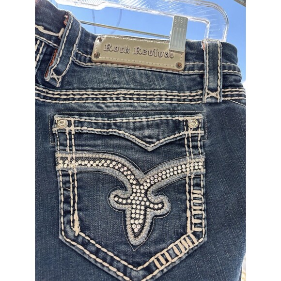 Women’s Rock Revival Dark Wash Jeans Vivian Capri Embroidery Rhinestones Sz 29