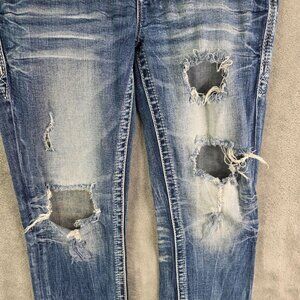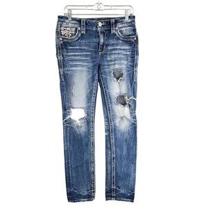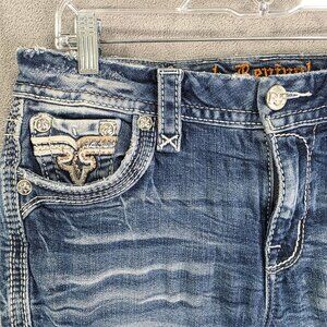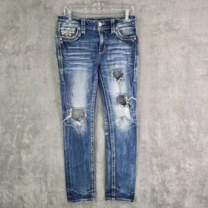 Womens Rock Revival Sosie Denim Blue Jeans Mid Rise Straight Distressed Size 27