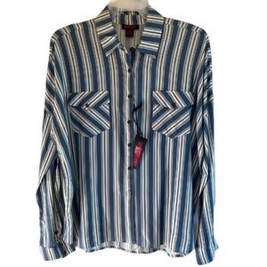 Womens Rock & Roll Western Country Striped Button Down Long Sleeve Shirt XXL