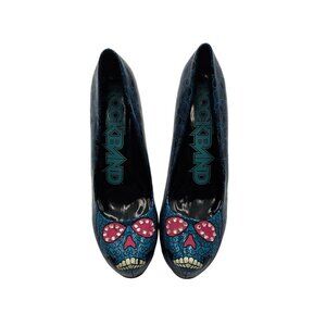 Women's - Rockband Iron Fist Sugar Skull Blue Punk Heels, Size 10