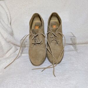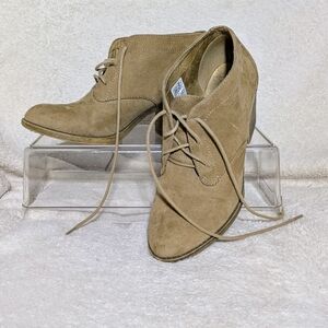 Women's Rocket Dog Heel Faux Suede Tan Lace-up Heeled Booties, Sz 8