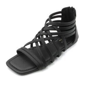 Women's Roman Gladiator Muliti Straped Back Zip Design Flat Heel Sandals Black