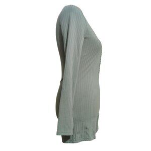 Womens Romper Pajama One Piece Ribbed Long Sleeve Button Front Sage Green Size S