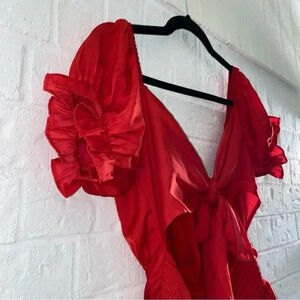 Women’s Romper Size Medium Red Tie Back Flirty Date Night Romantic