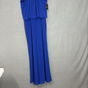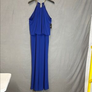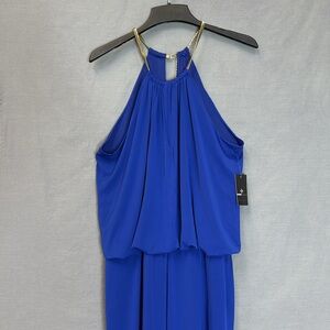Women’s Ronni Nicole Blue/Gold Halter Jumpsuit Size 12 New with Tags