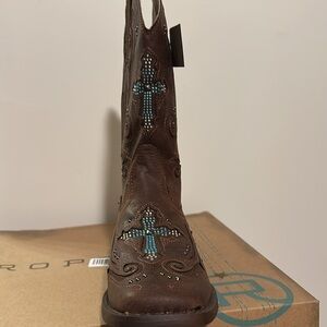 Brown Roper boots with turquoise jeweled crosses. Size 8. Never worn. Tags still attached.
